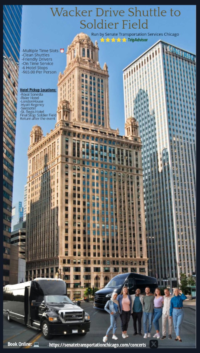 WACKER DRIVE🏈SHUTTLE to SOLDIER FIELD🎤(SHARED SHUTTLE)🐻BEARS GAME